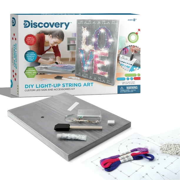 Discovery Kids Diy Light Up String Art Set Craft Accessories Kit Custom Led Sign Includes Colored String Paint Stencils And Mountable Art Board Make Your Own Art For Girls Ages 8 And Up